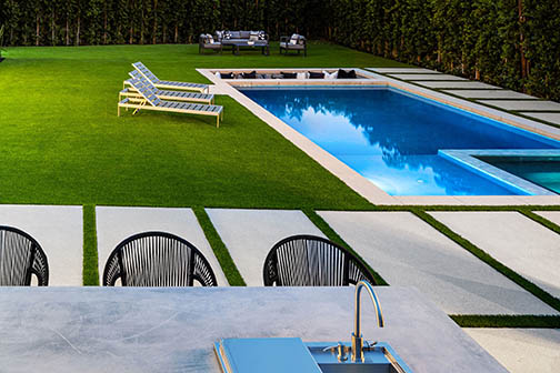 By switching to an artificial turf, not only will you eliminate upkeep in the area around your pool, the kids can splash away without any worry of damaging your grass.
